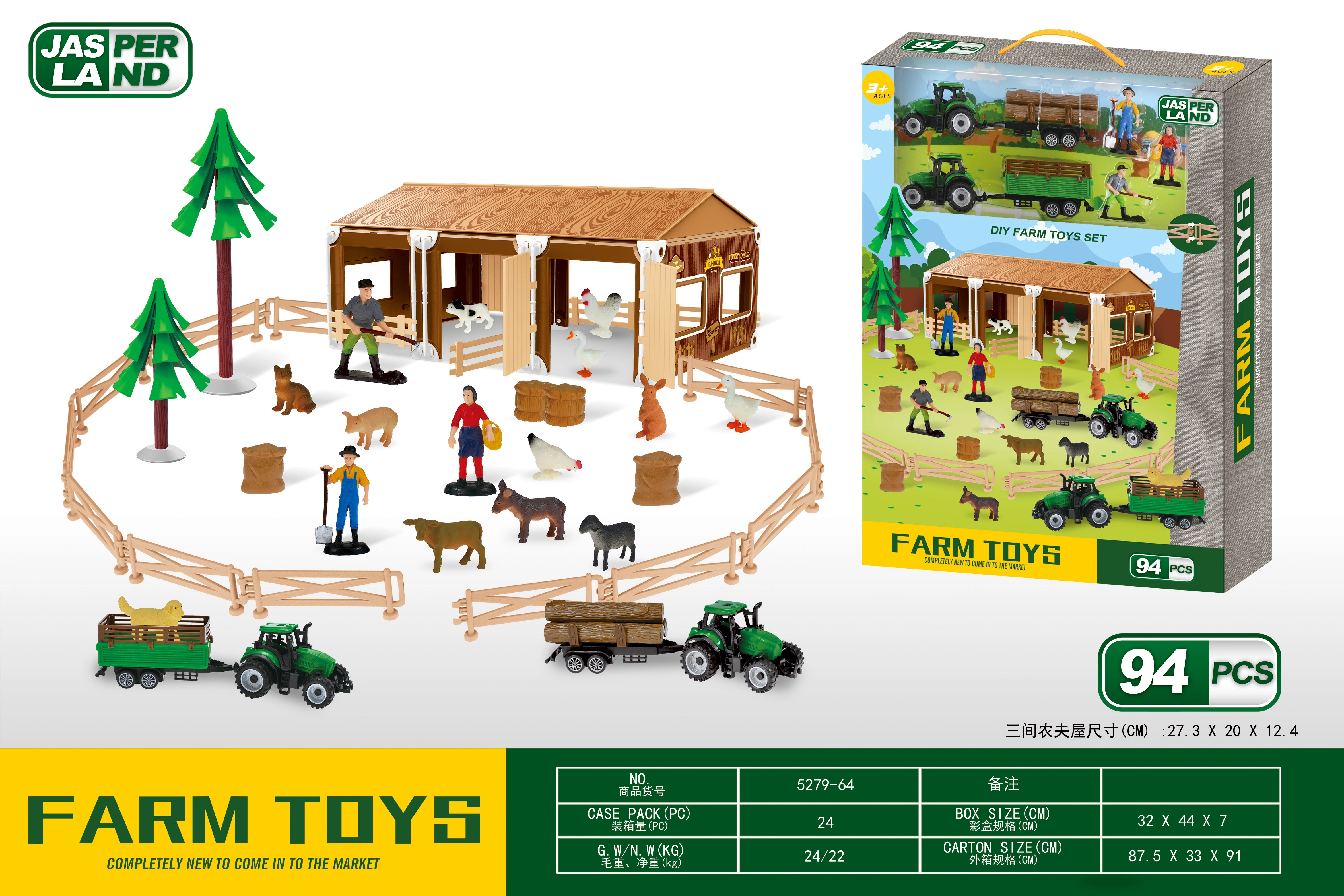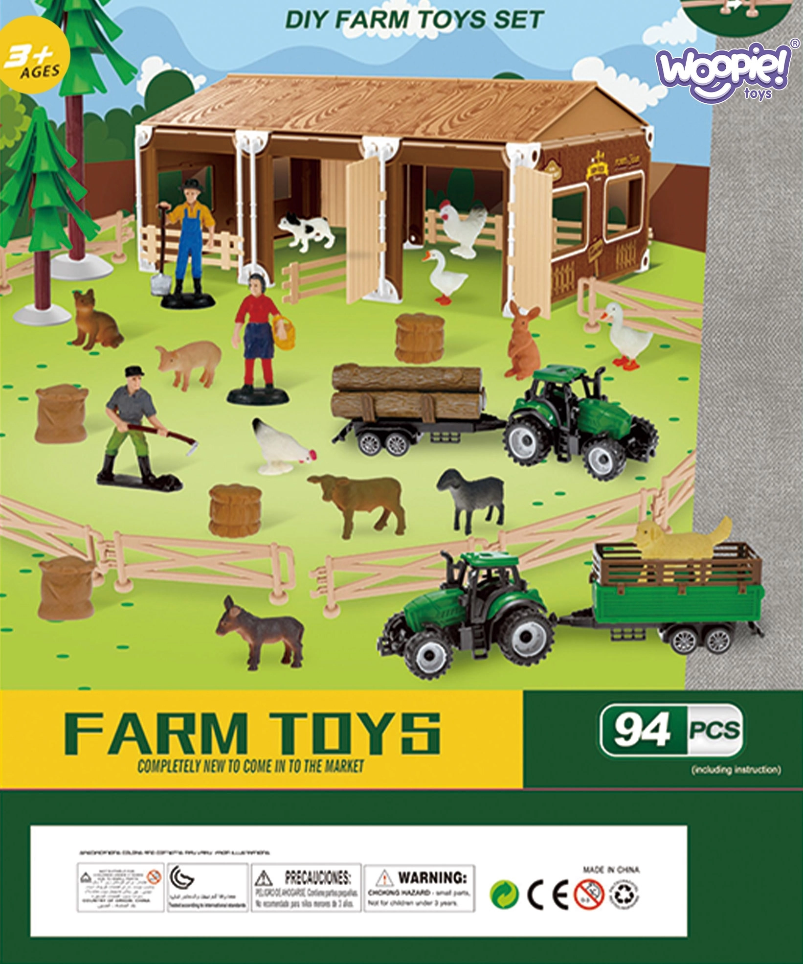 - 94 piezas para horas de diversión: animales, personas, tractores, remolques, granero, cercas y accesorios.