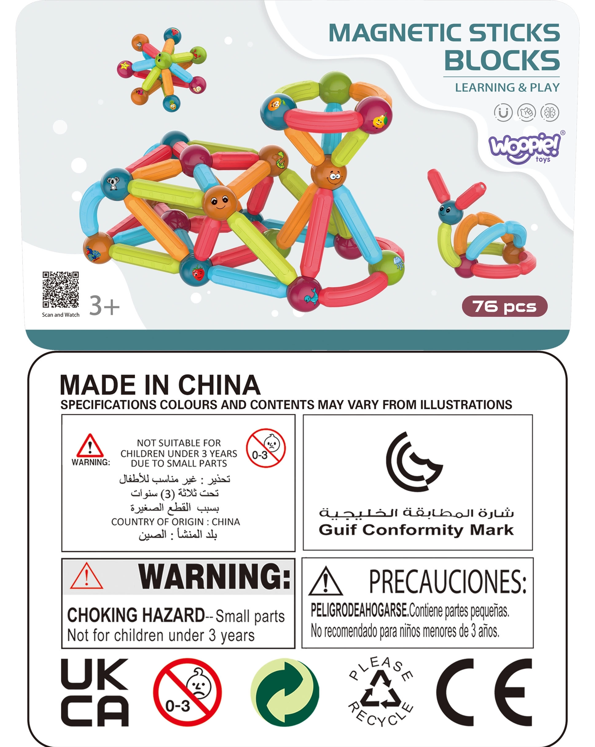Descubre el divertido y seguro juego de construcción magnético WOOPIE con un total de 76 piezas, que combina juego y aprendizaje. Gracias a los imanes potentes, las piezas gruesas y de colores y las uniones esféricas, los niños construyen fácilmente diferentes estructuras, formas e incluso mini casitas. El juego desarrolla la creatividad, la motricidad fina, la imaginación espacial y la concentración; incluye también una tarjeta con patrones.