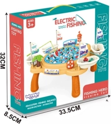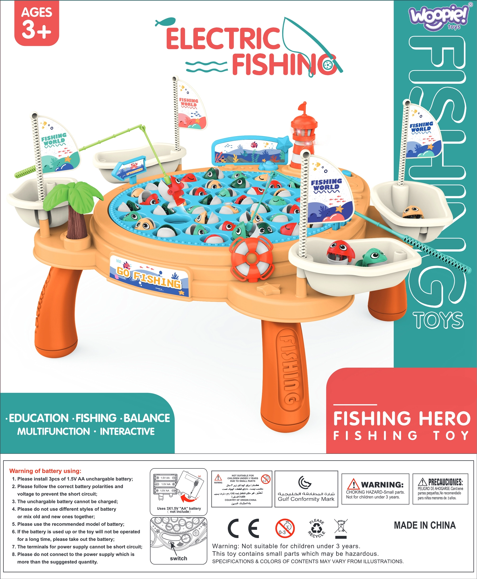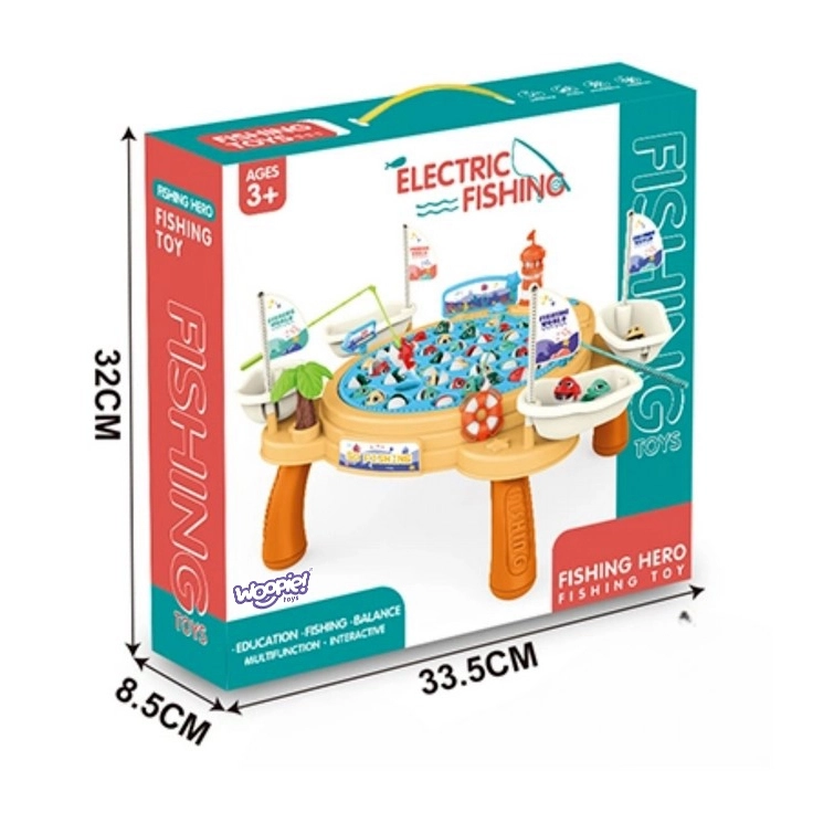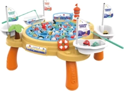 La mesa de pesca interactiva «Barco Pirata» de Woopie es ideal para niños a partir de 3 años. Este producto divertido y educativo fomenta el desarrollo de la motricidad fina, la paciencia y las habilidades sociales. Los niños pueden disfrutar de efectos de sonido y del dinámico giro de la mesa, que incrementa el atractivo del juego. La mesa está diseñada para jugar hasta cuatro jugadores, cada uno con su propia caña y un barco pirata para guardar los peces capturados.