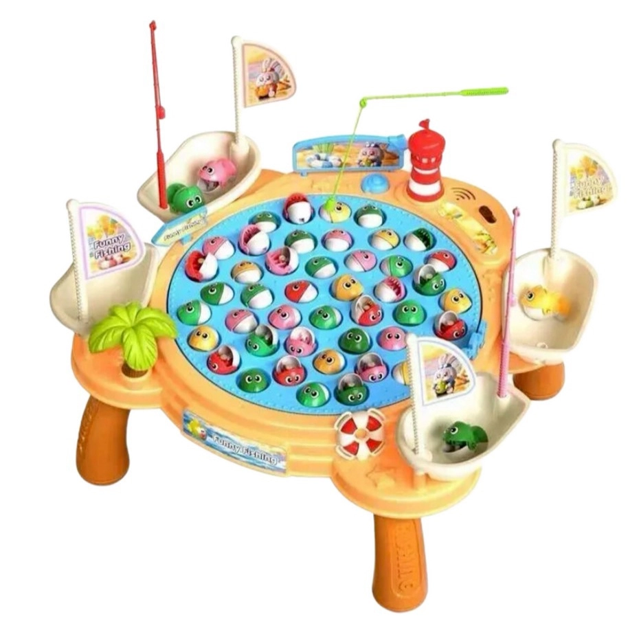 Contenido del paquete: mesa plegable, 4 cañas, pececitos.