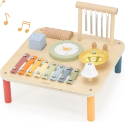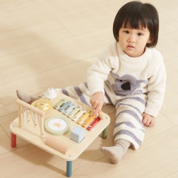 Cada elemento de la mesa esconde un instrumento fascinante diferente que invita a experimentar y a crear melodías propias. Este juguete multifuncional está diseñado para fomentar el desarrollo sensorial y creativo de los niños a partir de los 18 meses.