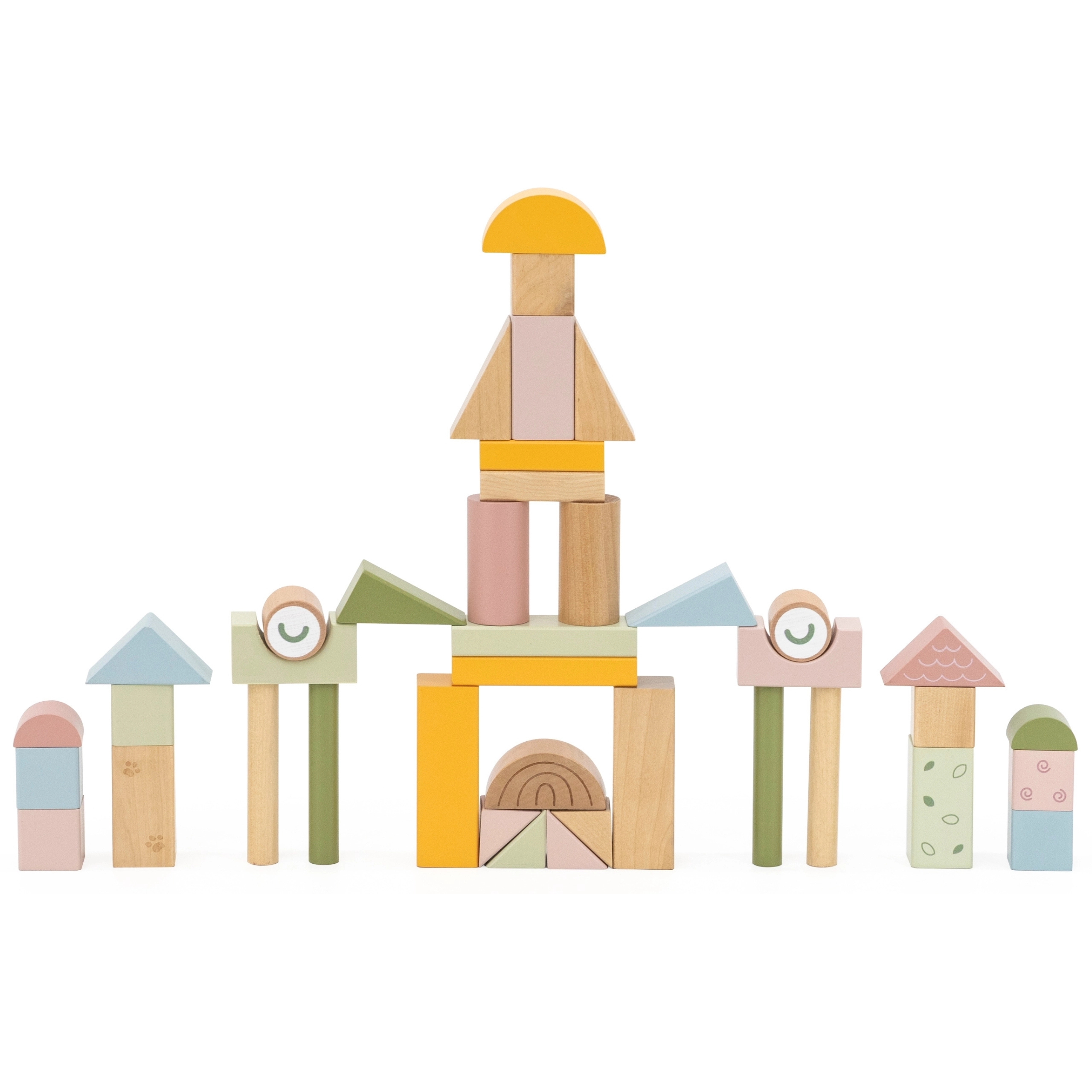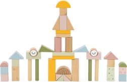 Las distintas formas y los colores pastel de los bloques animan a la creatividad y al aprendizaje de colores y formas.