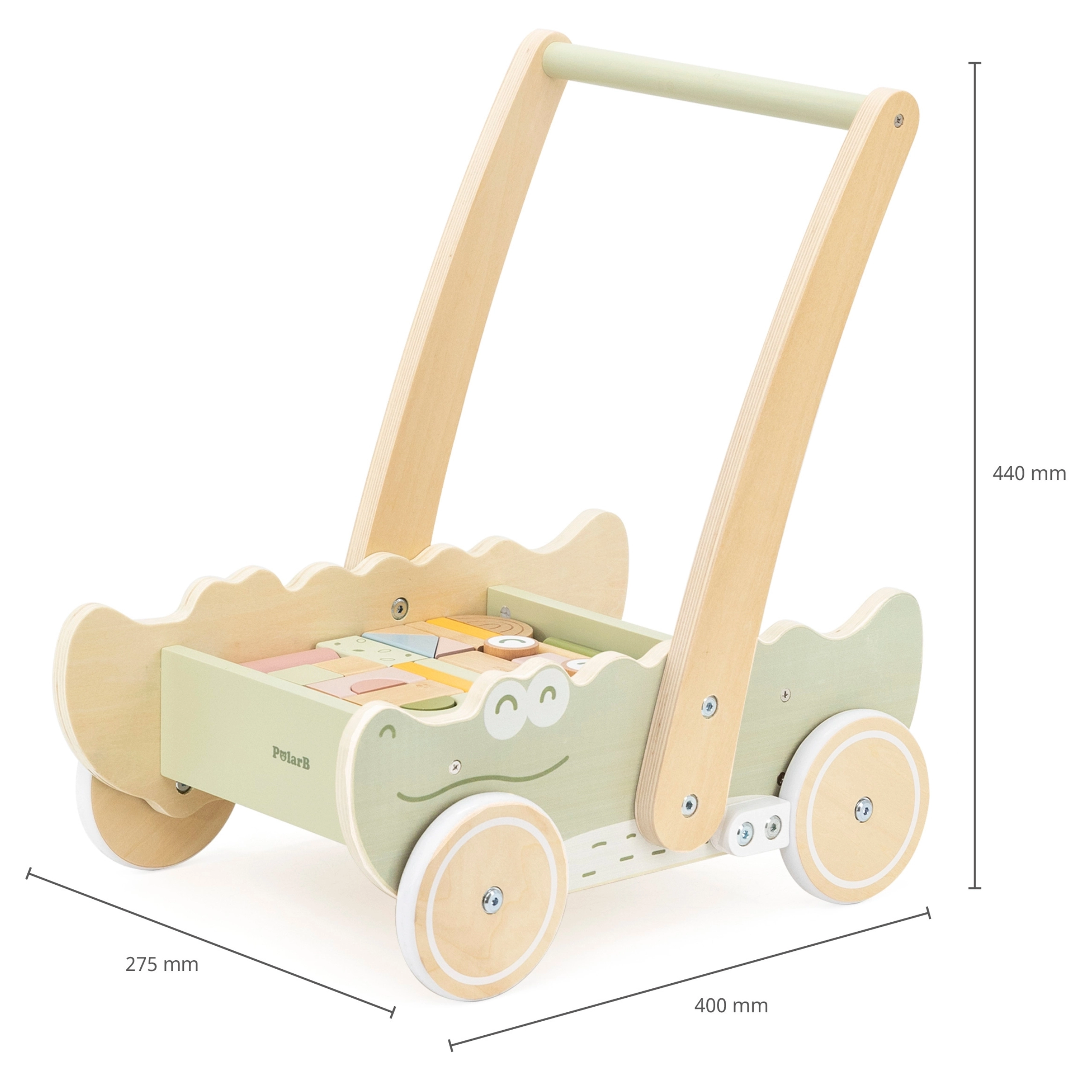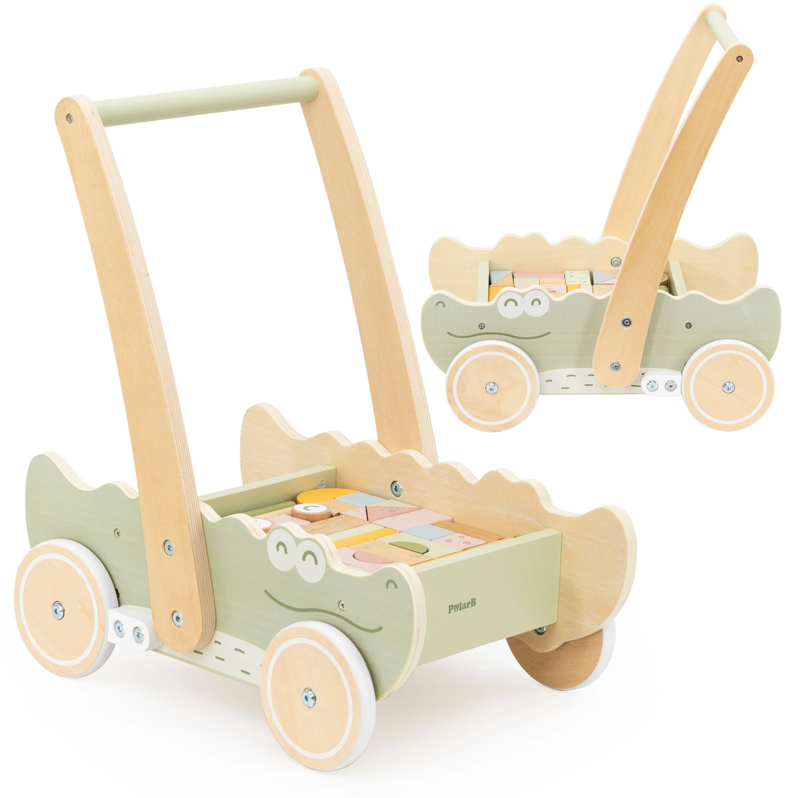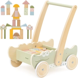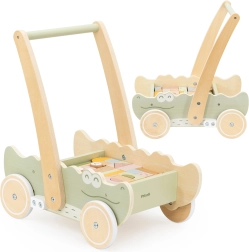 Disfruta de la alegría de los primeros pasos con el andador en forma de cocodrilo. Su estable estructura de madera aporta el apoyo necesario y permite a los niños explorar con seguridad el mundo que les rodea. El andador está equipado con un asa ergonómica, que ayuda a los niños a mantener el equilibrio.