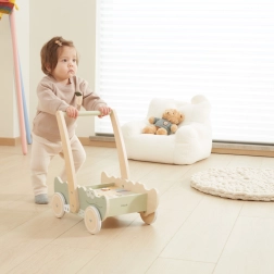 La estructura de madera ofrece un soporte firme para los pequeños pies, lo que permite al niño aprender a caminar con seguridad.