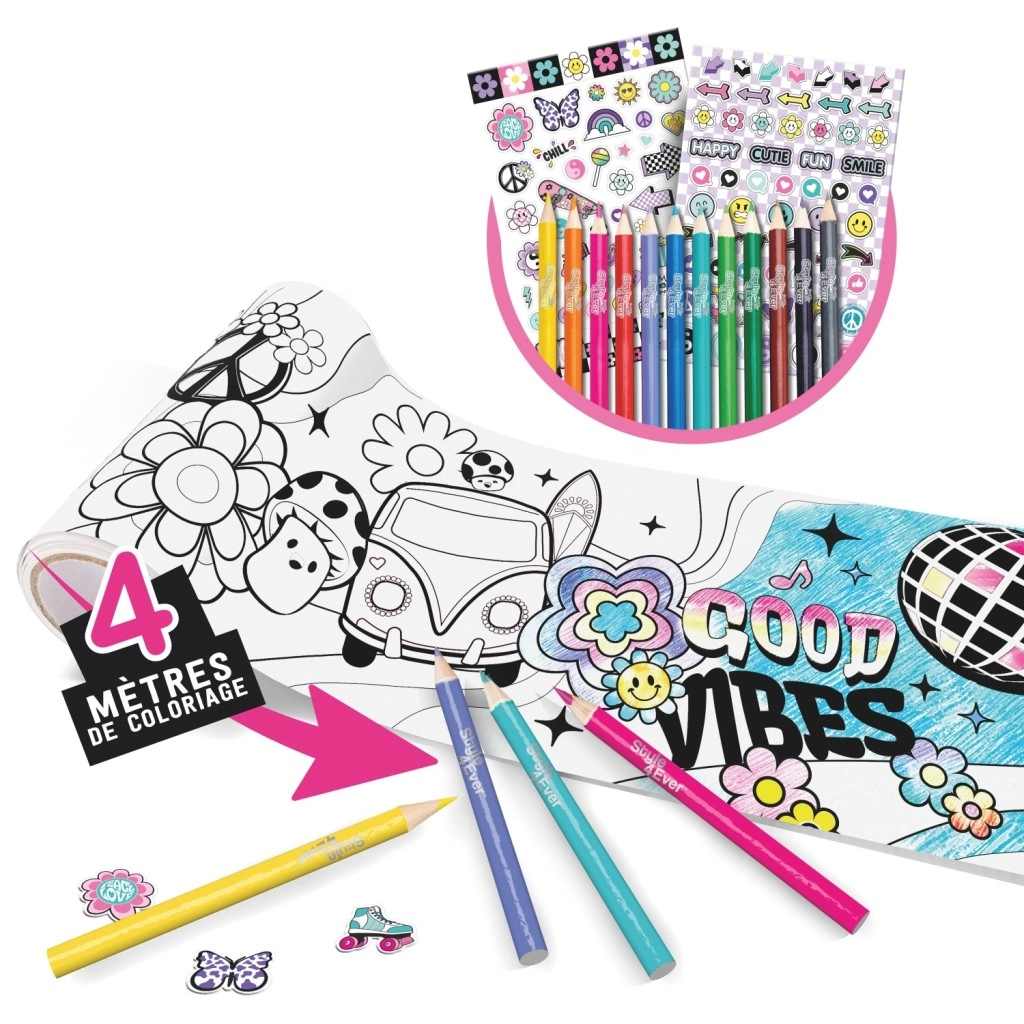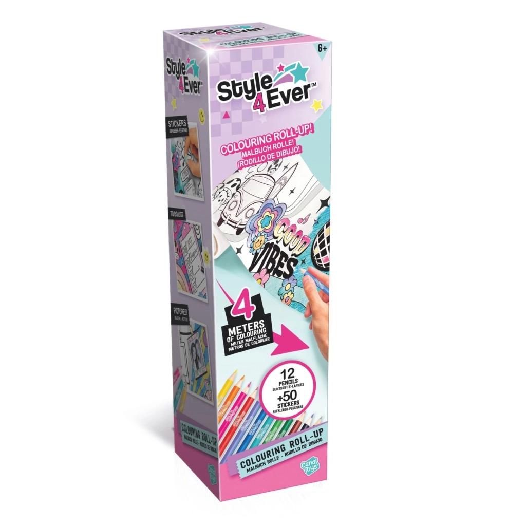 Descubre una diversión sin fin con el set Style4Ever libro para colorear en rollo: un rollo de 4 metros para colorear, 12 lápices de colores vibrantes y 50+ pegatinas para un toque original. Ideal para niños a partir de 6 años, desarrolla la motricidad fina, la creatividad y la concentración: diversión perfecta para horas y horas.