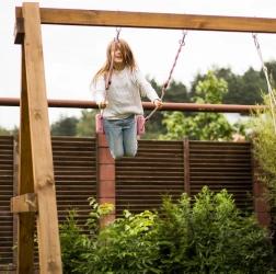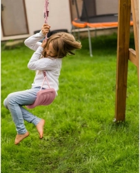 Los materiales resistentes a la lluvia, la humedad y a la radiación UV mantienen el columpio bonito y funcional durante mucho tiempo. Gracias a los anillos de montaje, lo colgarás en un gancho o mosquetón en menos de 30 segundos: en la terraza, el balcón, el parque infantil o en la habitación.