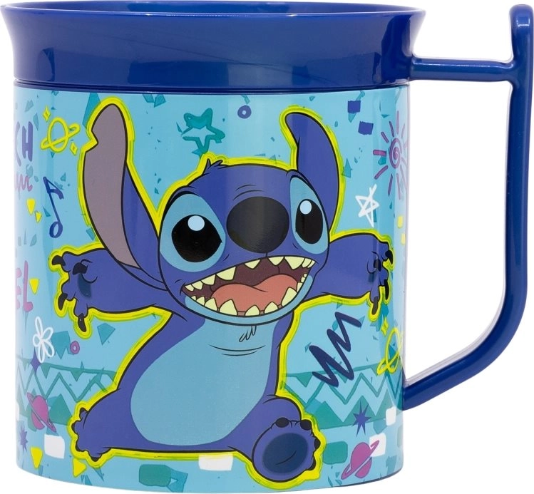 Adorable taza de plástico con capacidad de 400 ml y el popular motivo de DISNEY STITCH, ideal para alegrar a niños y padres. Es apta para microondas, ligera, resistente e ideal para el uso diario. No contiene BPA y, gracias a su material robusto, soporta bien pequeñas caídas.