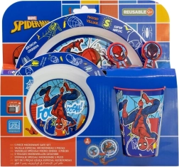 El juego de comedor infantil de cinco piezas con el popular motivo de SPIDERMAN de la marca STOR hará más agradable cada comida. Incluye plato, cuenco, vaso, cuchara y tenedor, es libre de BPA y para el microondas solo es apto el vaso (máx. 600 W durante 2 minutos).