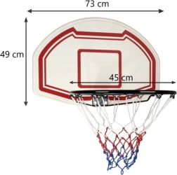 Este aro de baloncesto colgante está diseñado para una instalación fácil sin necesidad de taladrar. Incluye dos ganchos para colgar en puertas con un grosor máximo de 4,5 cm. El aro cuenta con un diámetro robusto de 45 cm, que es el tamaño estándar según la FIBA y la NBA.