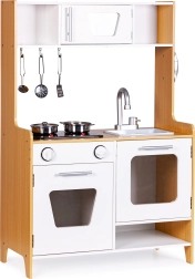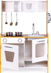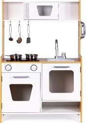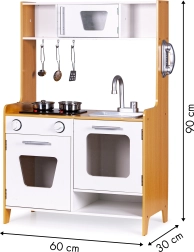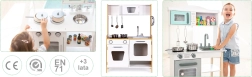 A todos los niños les encanta imitar a los adultos, así que con esta cocina su hijo podrá jugar a ser chef. La cocina cuenta con quemadores iluminados con efectos de sonido reales, horno y microondas con puertas que se abren, y mucho espacio de almacenamiento para maximizar la diversión.