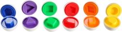 Los huevos de colores ayudan a los niños a desarrollar la coordinación mano-ojo encajando las mitades según sus formas y colores.