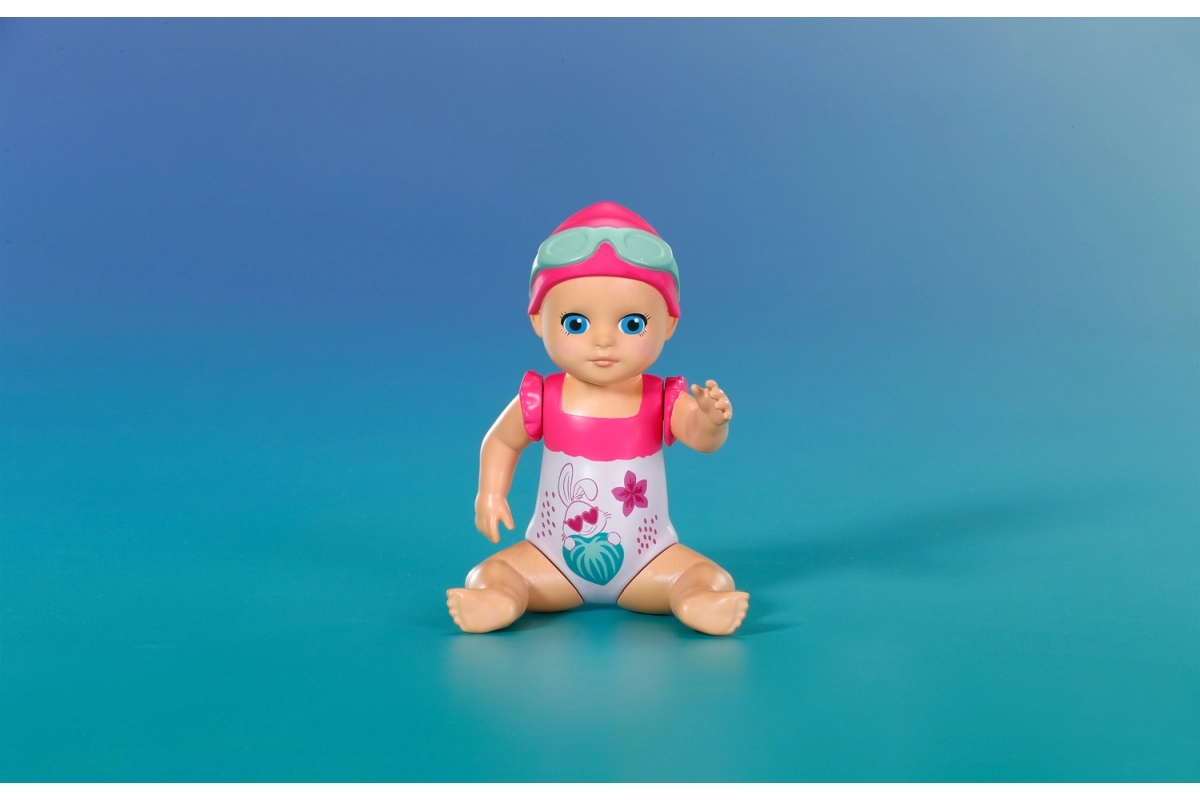 Emma está diseñada para una diversión acuática segura y duradera. Solo hay que girar los brazos hacia atrás, soltarlos y la muñeca avanzará con elegancia. Su diseño robusto e higiénico, con bordes suaves, es perfecto para la bañera y para llevar de viaje. Gracias a sus colores vivos y a los detalles realistas, los niños se encariñarán rápidamente con Emma.