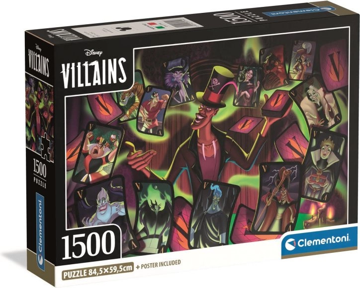 Descubre la diversión y el desafío de armar este rompecabezas de alta calidad de la marca Clementoni. La imagen completada mide 84,5 x 59,5 cm y su impresión precisa y colores vibrantes garantizan que disfrutes cada detalle. Este motivo en particular presenta una colección única de los villanos más populares de Disney, lo que convierte a este rompecabezas en una pieza excepcional para cualquier fanático de las películas animadas.