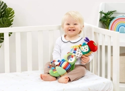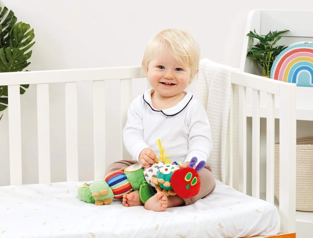 Conoce al icónico personaje del libro: La oruga muy hambrienta, como un juguete textil activo, suave y tierno para bebés desde el nacimiento. Sus patrones coloridos, diversas texturas, un espejo seguro para bebés y un mordedor con forma de hoja fomentan el desarrollo sensorial, la coordinación mano-ojo y la juego activo en casa y durante los paseos. Las prácticas presillas permiten fijarlo fácilmente al cochecito, la silla de coche o la cuna.