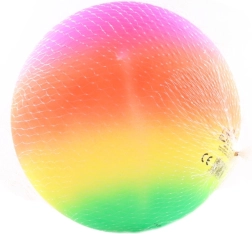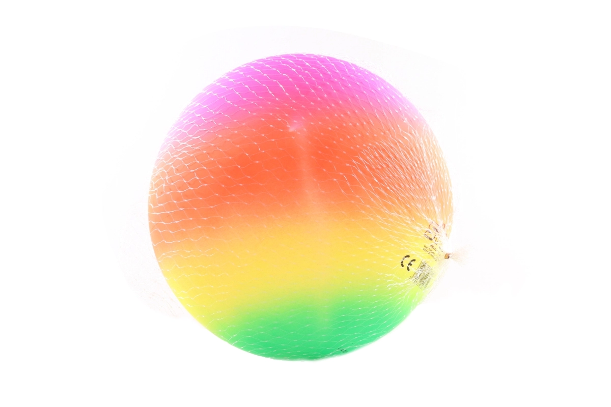 Disfruta de la diversión con una pelota de colores en tonos arcoíris con un diámetro de 23 cm. Es ligera, fácil de agarrar e ideal para juegos en el jardín y en la playa. Apta para niños a partir de 3 años, envasada en una malla y se entrega desinflada para facilitar el transporte.