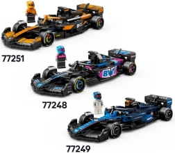 El modelo ofrece apertura del cockpit levantando el halo, alerón trasero, suspensión tipo doble triángulo (wishbone) y ruedas que giran con neumáticos traseros más anchos con el logotipo de Pirelli. La minifigura del piloto, con mono del equipo y casco, se coloca fácilmente en el cockpit para emprender la ruta hacia la victoria.