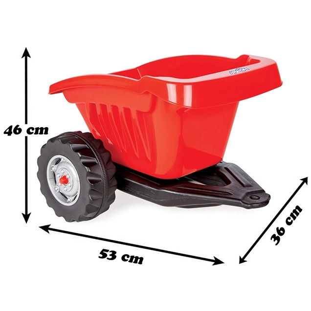 Este robusto remolque volcable en un llamativo color rojo amplía las posibilidades de juego en la arena, el jardín o el patio. Está fabricado con materiales de calidad y seguros para la salud, respetuosos con el medio ambiente. Es adecuado para niños a partir de 3 años y puede transportar arena, hojas, juguetes u otros objetos pequeños.