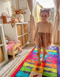 La alfombra musical interactiva – piano de la marca WOOPIE aporta diversión para toda la familia. Los niños pueden bailar, tocar y cantar, desarrollando la coordinación y el oído musical. La alfombra es suave, con parte inferior antideslizante, cuenta con 10 teclas de piano e iconos de 8 instrumentos, varios modos de reproducción, grabación y reproducción, y tras 3 minutos de inactividad pasa al modo de ahorro de energía.