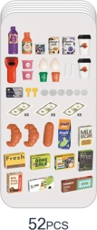 El juego favorece el desarrollo del pensamiento lógico, el cálculo y la comunicación. El montaje fácil permite empezar a jugar rápidamente y el completo juego de 52 piezas proporciona infinitos escenarios de compra.