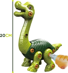 El dinosaurio Brachiosaurus de la conocida marca WOOPIE te llevará a la época en la que estos fascinantes seres caminaban por la Tierra. El juguete está diseñado para desarrollar las habilidades manuales y la creatividad de tu hijo, apoyando su motricidad fina. El set incluye 28 piezas de plástico que tu hijo ensamblará con la ayuda de un destornillador funcional o un taladro eléctrico con giro bidireccional, que permite atornillar y desatornillar.