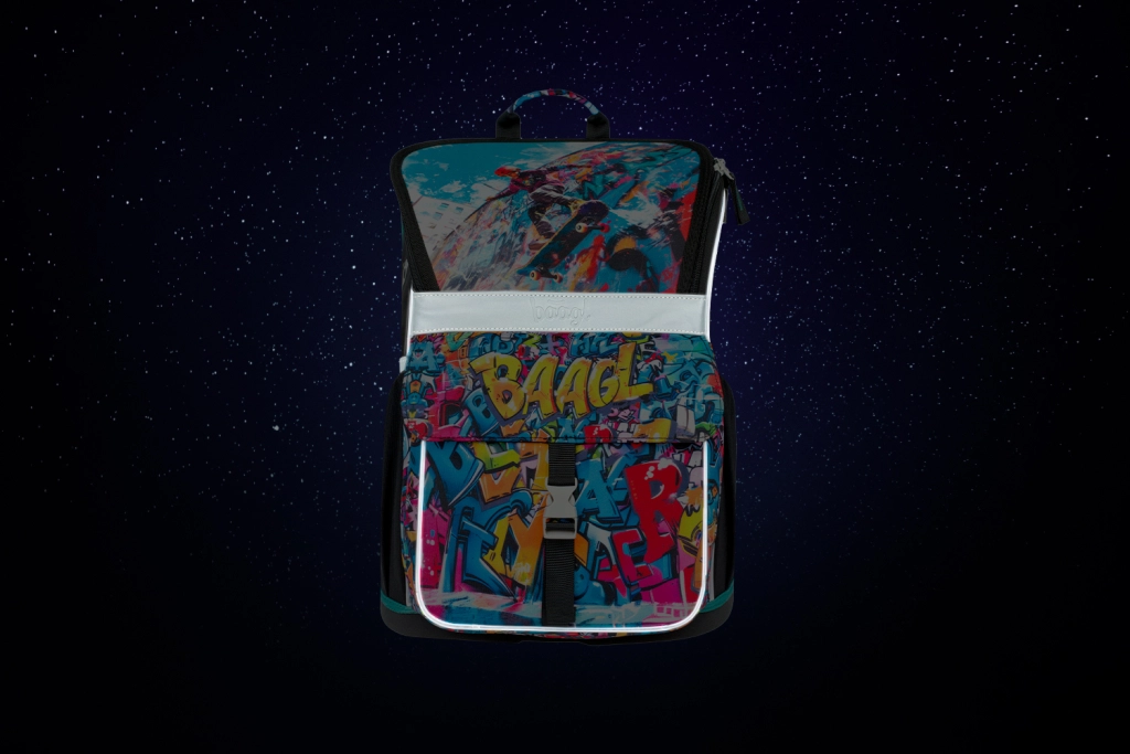 Llama la atención con la mochila BAAGL Zippy Skatepark, llena de colores y patrones creativos.