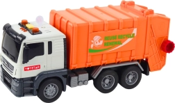 El camión de basura naranja a escala 1:14 entusiasmará a todos los pequeños fans de los vehículos especiales. Gracias a los efectos de luz y sonido, la compuerta trasera abatible y los dos contenedores, ofrece un juego realista y a la vez fomenta el aprendizaje del reciclaje. Su fabricación de plástico de calidad y las pilas incluidas garantizan una diversión inmediata y segura.