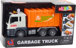 - camión de basura con luces y sonidos, 2× cubo, pilas 3× AG13