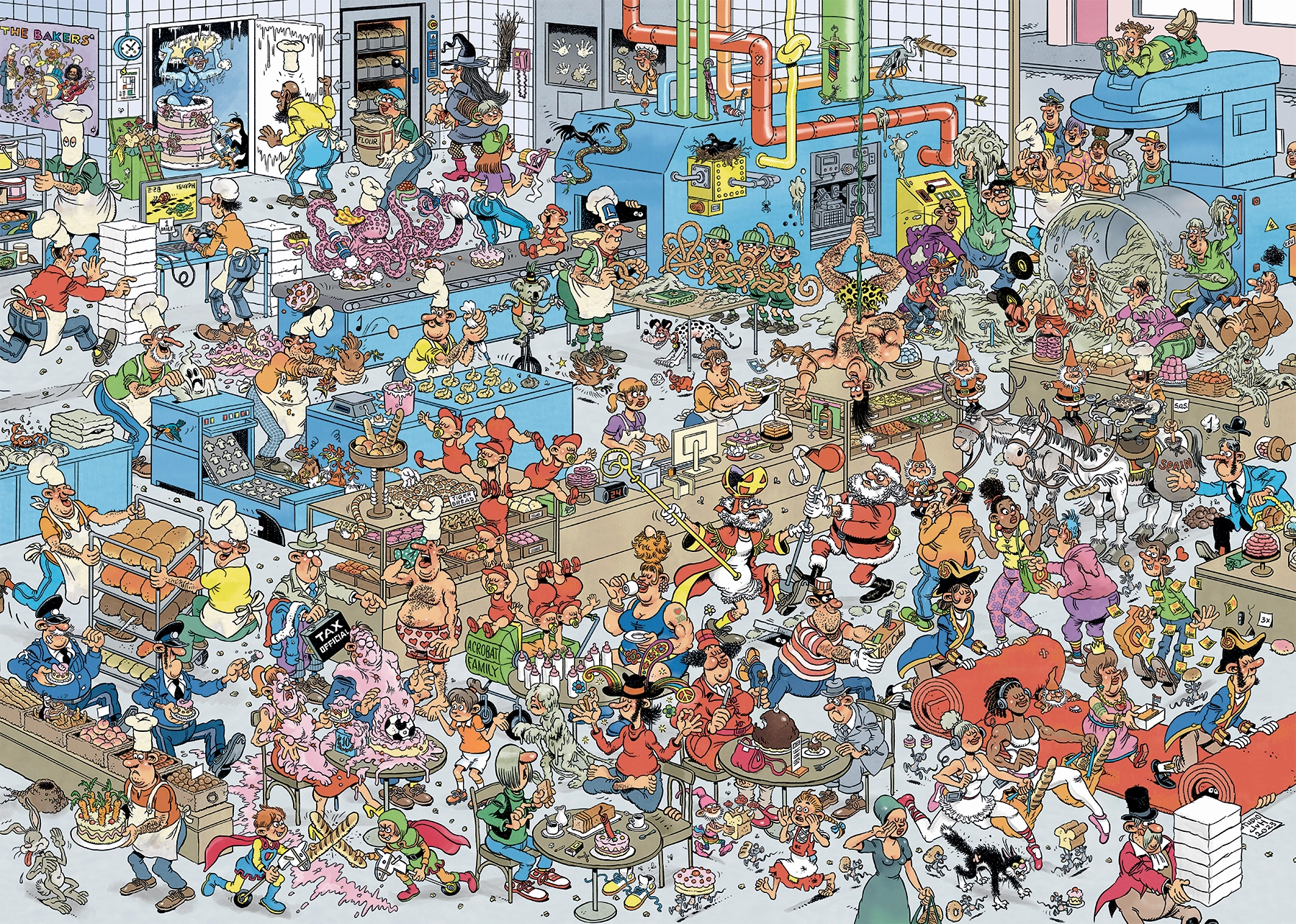 Adéntrate en el bullicioso mundo de la panadería de la legendaria serie de JAN VAN HAASTEREN. Cada escena está llena de humor y situaciones inesperadas: busca los motivos icónicos como la aleta de tiburón, las manos traviesas, la dentadura postiza, San Nicolás e incluso el autorretrato del autor. Gracias a la impresión precisa y a los colores intensos, armarlo es un placer de principio a fin.