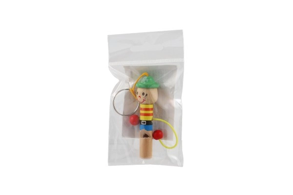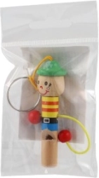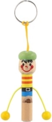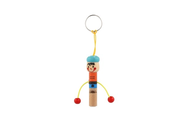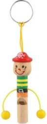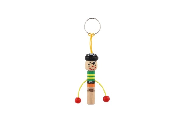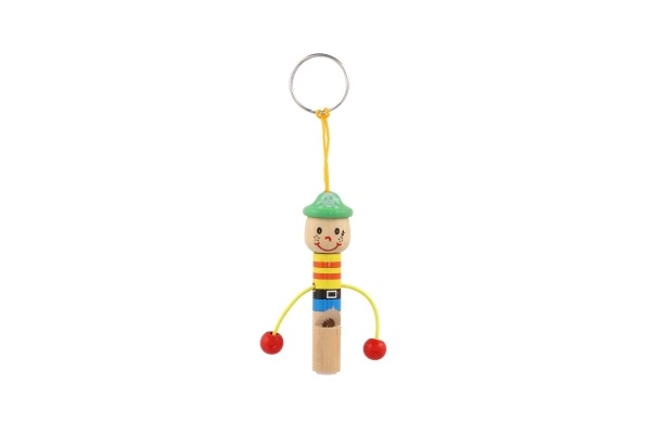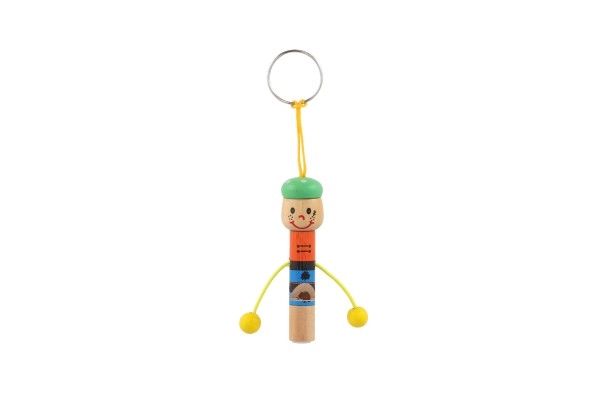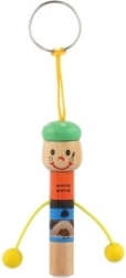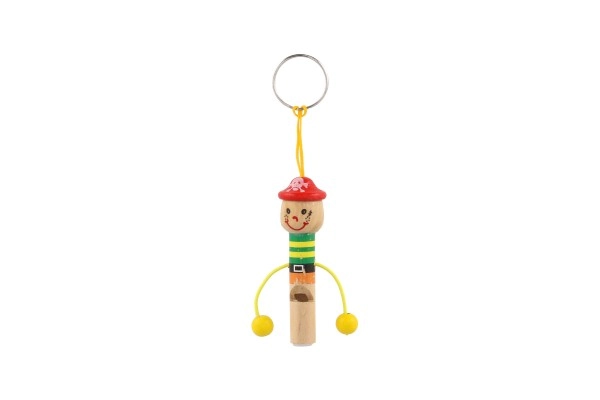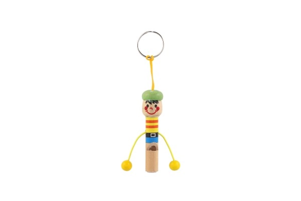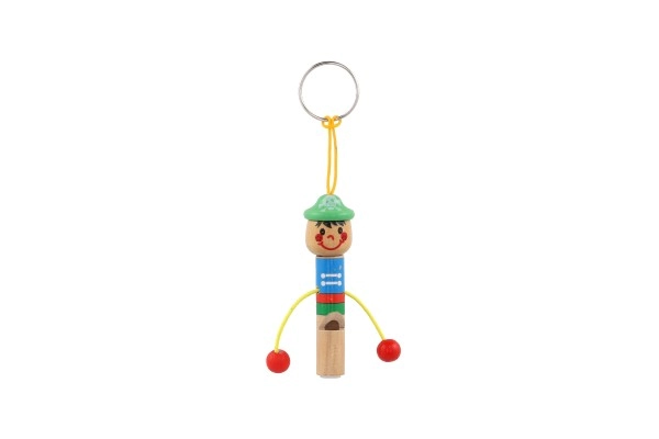 Encantador llavero de madera con forma de muñequito e integrado con un silbato de 8 cm: un accesorio con estilo y práctico. Gracias al lazo se acopla fácilmente a llaves, mochila o estuche. Destaca por sus colores alegres y su diseño juguetón, por lo que encantará a niños y adultos. Elige entre el surtido de tipos y disfruta de su ligera y resistente construcción de madera y del silbato práctico siempre a mano.