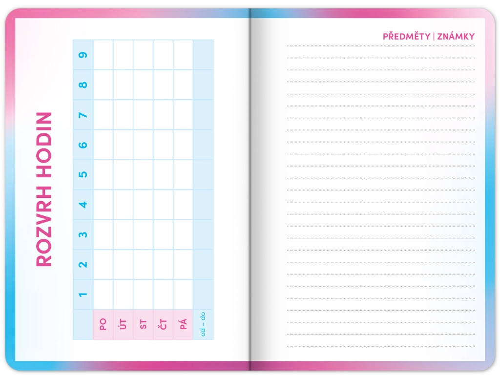 - Hojas para el horario de clases y espacio para notas, ideal para apuntar tareas y fechas importantes.