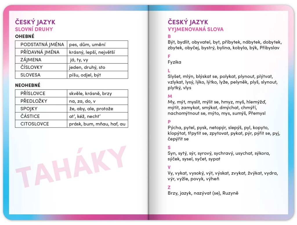 - Conceptos básicos de checo, inglés, matemáticas y física, útiles para el estudio.