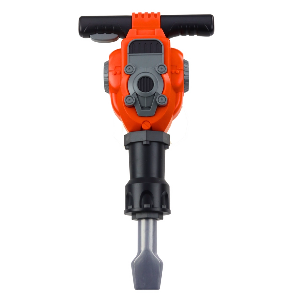 Juguete interactivo para pequeños constructores: martillo neumático infantil en diseño naranja‑negro con efectos de sonido y vibración, empuñadura ergonómica y gafas de protección. Fabricado en plástico resistente, funciona con pilas AA, ideal para un juego creativo y seguro para niños a partir de 3 años.