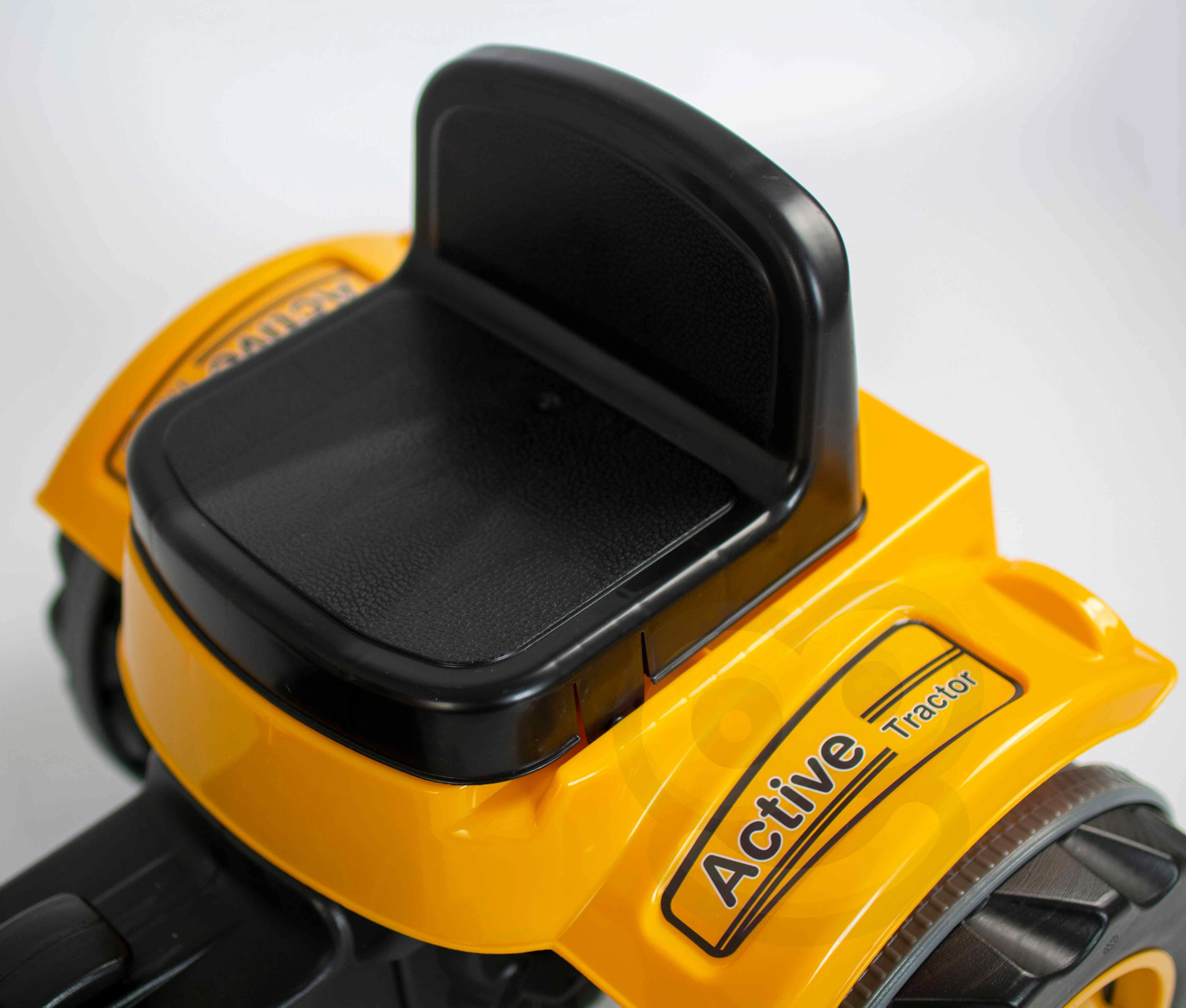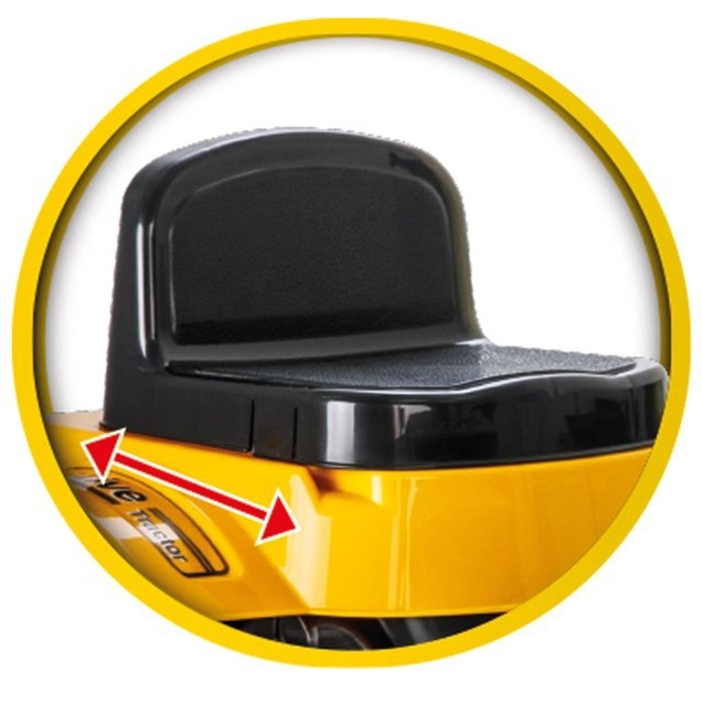El tractor está equipado con seis niveles de ajuste del asiento para la comodidad del niño durante la conducción.
