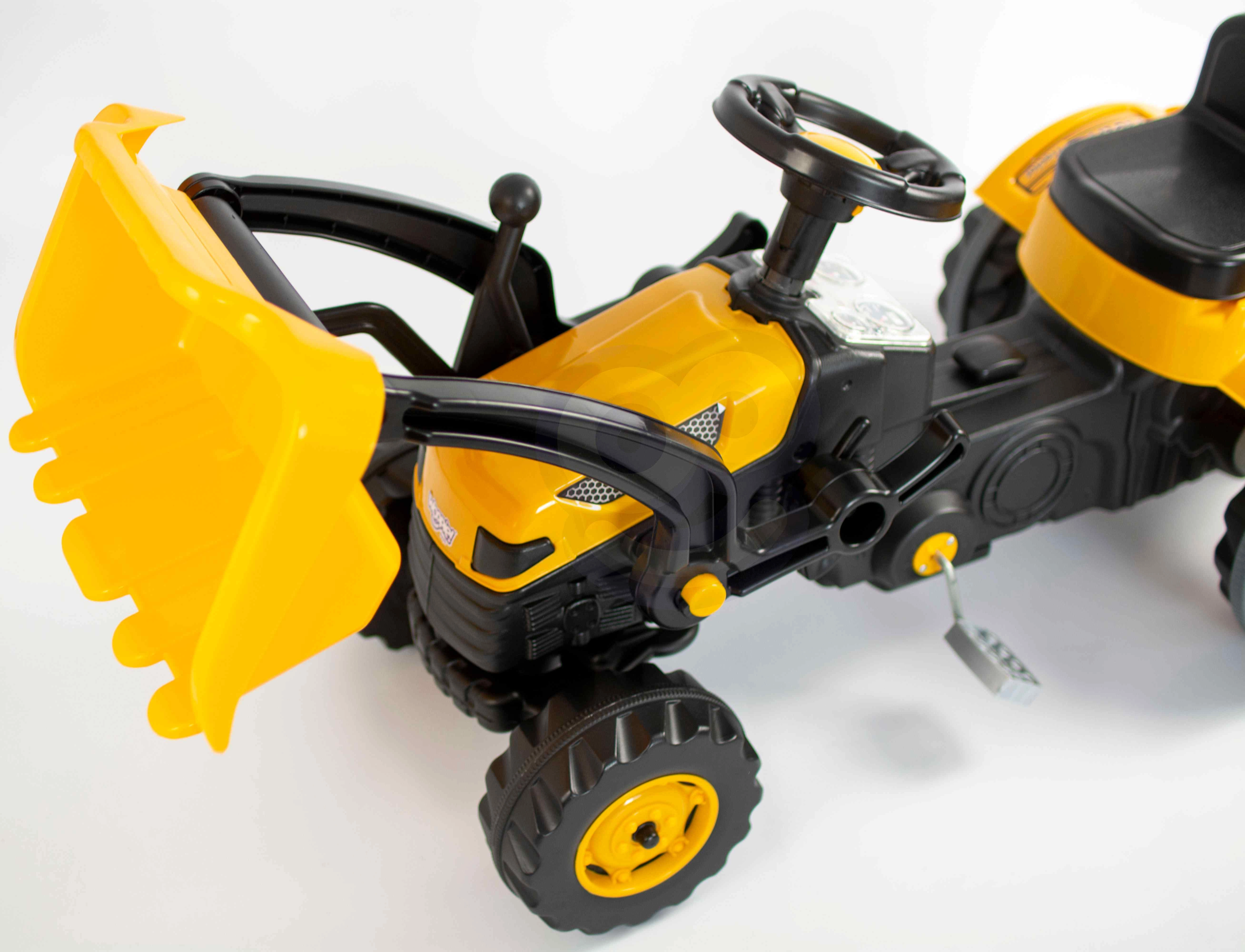 Tractor de pedales amarillo con cargadora frontal es un juguete estupendo para niños que quieren empezar a descubrir el mundo de los vehículos de pedales. Gracias a la función de la cargadora, los niños pueden cargar sus juguetes favoritos y llevarlos a emocionantes aventuras.
