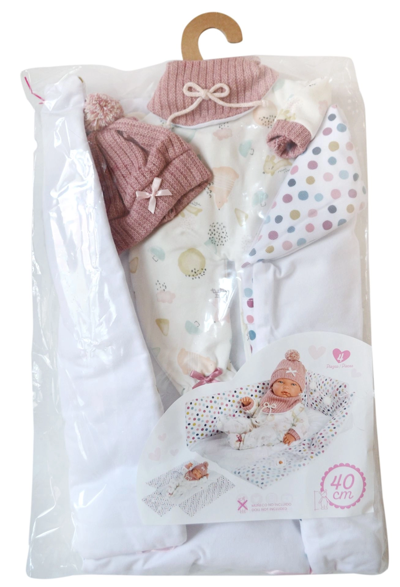 Este impresionante set de 4 piezas ofrece un atuendo completo para tu muñeca bebé New Born. Incluye tres prendas de vestir y una innovadora base con pompones que puede transformarse fácilmente en un corral de juego. Cada detalle está elaborado con precisión para que tu hijo disfrute al máximo durante el juego.