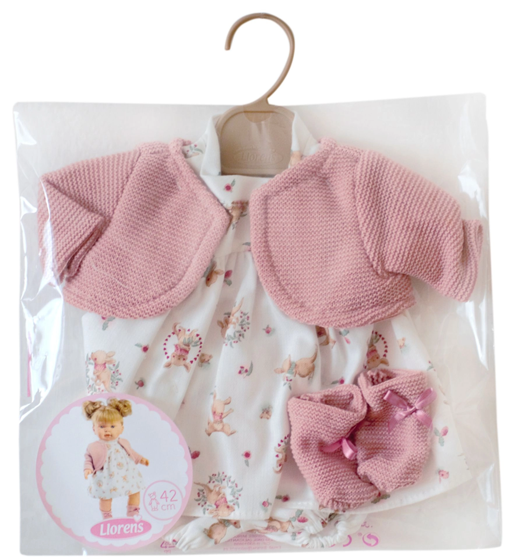 Elegante conjunto de ropa para muñeca Llorens de 42 cm que aporta alegría y originalidad al juego. Hecho a mano en España, este set de prendas es ideal para niños a partir de 3 años.