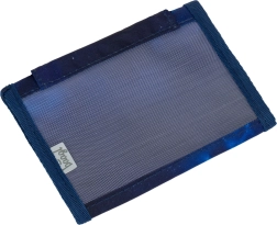 La cartera está fabricada con material textil reciclado con bordes reforzados para una mayor durabilidad. El cordón ajustable con cierre de seguridad permite un uso cómodo y seguro en el cuello, y el velcro facilita la apertura y el cierre rápidos.