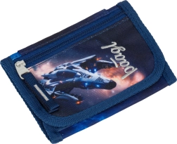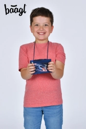 Práctica cartera infantil para el cuello con motivo de nave espacial de la marca BAAGL, ofrece uso seguro, espacio suficiente para monedas y tarjetas y diseño resistente de materiales reciclados. Gracias a la cordón ajustable con cierre de seguridad y al cierre con velcro es ideal para el día a día en el colegio y en actividades extraescolares.