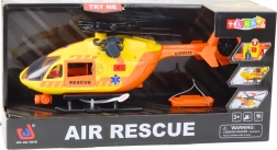 El helicóptero está equipado con hélices giratorias: el rotor principal y el rotor de cola pueden ponerse en movimiento manualmente, lo que añade autenticidad al juego. Al presionar el botón se activan efectos de luz y sonido que imitan la señal de una unidad de rescate y las luces de advertencia parpadeantes como en un helicóptero médico real.