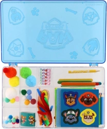 La caja transparente con el logotipo en relieve de PATRULLA CANINA guarda de forma segura todos los materiales. Gracias a los compartimentos segmentados, todo se mantiene ordenado y listo para crear en casa o durante los viajes.