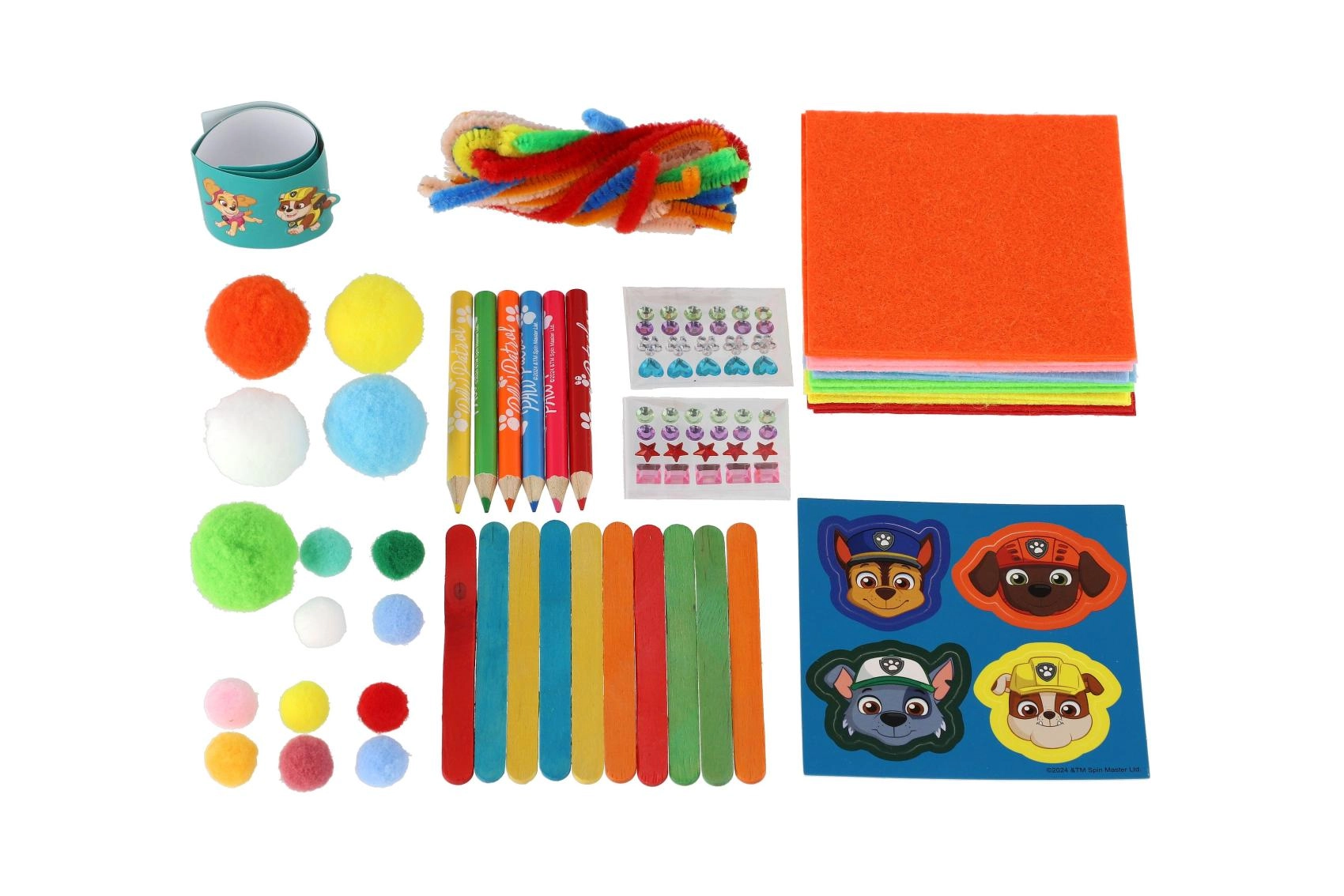 - Equipamiento abundante: pompones, limpiapipas peludos, formas de espuma, palitos, lápices de colores y pegatinas de PATRULLA CANINA.