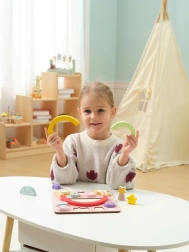 Descubre la magia de un juego que combina un rompecabezas de encaje y un juego de equilibrio en uno. Consta de una base y 14 piezas de encaje. Deja que los niños pongan a prueba su paciencia y creatividad apilando las coloridas piezas.
