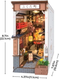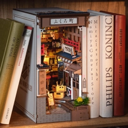 Pasea por las encantadoras callejuelas de una ciudad japonesa con el rompecabezas 3D de RoboTime. Este separador de libros único captura la atmósfera de la vida nocturna con detalles auténticos, como bares izakaya, restaurantes de ramen y parrilla con platos. Disfruta de un montaje sencillo sin pegamento ni herramientas y luce una decoración perfecta con iluminación LED.