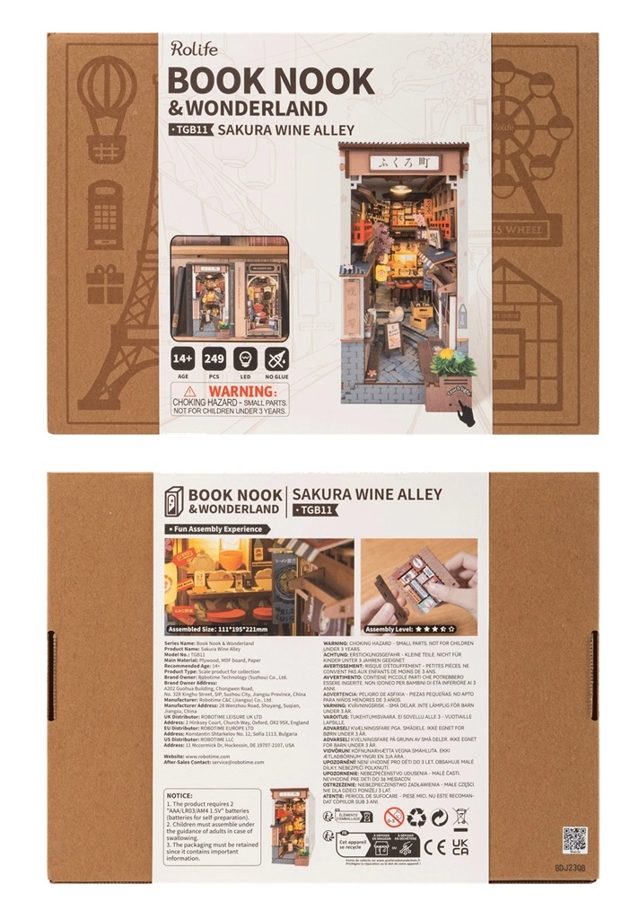 El rompecabezas 3D Separador de libros Calle de Sakura con vino de RoboTime es una forma creativa de llevar un toque de la cultura japonesa a tu hogar. Este set incluye 249 piezas cortadas con precisión que encajan fácilmente, creando una estructura estable sin necesidad de pegamento ni herramientas.