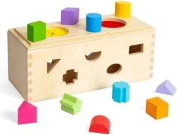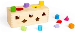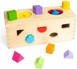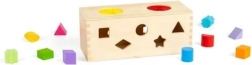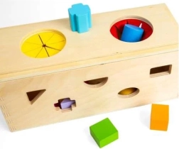 Enriquece la percepción sensorial de tus hijos con esta caja misteriosa de madera. Coloca 10 formas en los orificios correspondientes en los laterales de la caja. A través de dos aberturas en la parte superior, los niños pueden introducir las manos, palpar y reconocer las formas dentro de la caja, lo que mejora sus habilidades motoras y la coordinación mano-ojo.