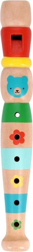 Flauta de madera Petit Collage es una excelente herramienta para desarrollar la musicalidad en los niños. Tiene una superficie suave, colores vivos y una decoración con un osito, lo que favorece el desarrollo cognitivo, la coordinación mano-ojo y el aprendizaje auditivo.