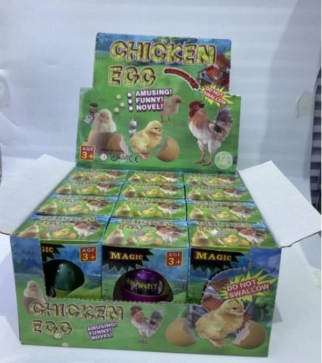 Huevo con pollito creciente es una sorpresa divertida para niños. Observa cómo el pequeño pollito crece de un huevo de 6 cm.