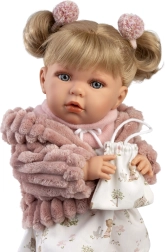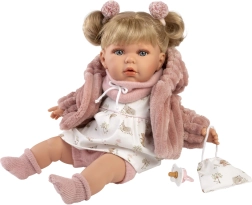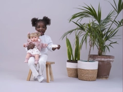 La muñeca Llorens Julia, con su estructura blanda de tela y el acabado de vinilo de alta calidad en la cabeza y las extremidades, ofrece una experiencia de juego inolvidable. Al retirar el chupete, empieza a decir palabras como “mamá” y “papá” y emite sonidos de llanto realistas, que se pueden calmar con el chupete magnético.