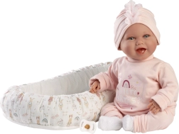Descubra la muñeca realista de Llorens, que ofrece excelentes características incluyendo un cuerpo blando de tela y sonidos que imitan a un bebé real. La muñeca es articulada y también puede sentarse, con articulaciones firmes que garantizan la movilidad de sus brazos y piernas. El chupete incluido en el paquete sirve como un bonito accesorio.