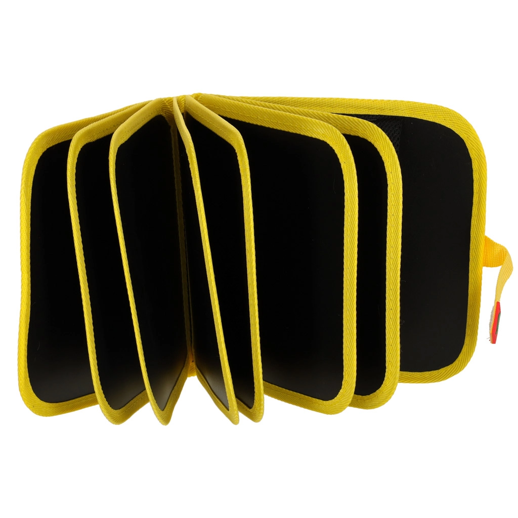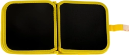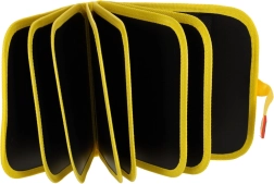El libro se abre como un estuche y, gracias al cierre de velcro, se mantiene seguro. Ligero y compacto: ideal para viajes y diversión en movimiento.